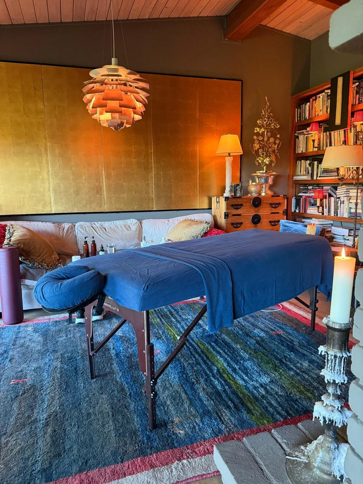 I am a mobile Massure ready to help you heal wherever you feel comfortable. On the day of your session, I arrive with a professional massage table, fresh linens, music, and all necessary supplies. You just provide a clear space (roughly 6x10 feet) and access to a sink.
